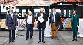 Mit rund 2,4 Millionen Euro unterstützt das Land Hessen die Stadt bei der Anschaffung von 13 Brennstoffzellenbussen. „Frankfurt ist jetzt sehr aktiv bei der Umstellung der Busflotte auf alternative Antriebe", erklärte Wirtschafts- und Verkehrsminister Tarek Al-Wazir bei der Übergabe des Förderbescheids am Montag, 19. Oktober, in Frankfurt.