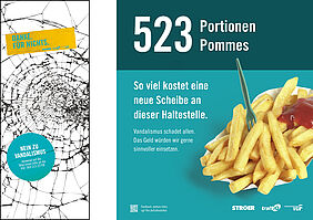 Ende 2022 beklebte die VGF daher die Haltestellen „Waldau“, „Waldfriedhof Goldstein“, „Harthweg“ und „Walter-Kolb-Siedlung“ im Rahmen eines Tests mit vier unterschiedlichen Konzepten. Nach rund sechs Monaten wurde die Kampagne ausgewertet: Den größten Rückgang an Sachbeschädigungen wies die Walter-Kolb-Siedlung auf und damit war das effektivste Konzept die Auflistung von Gegenwerten: 523 Portionen Pommes kostet eben eine neue Scheibe, und für den Gegenwert einer Playstation gibt es nicht mehr als einen einzigen Mülleimer. „Aufenthaltsqualität, Sauberkeit und Sicherheit in Bus- und Bahnstationen sind wesentlich für die Akzeptanz des Nahverkehrs und haben für uns sehr hohe Priorität. Beschädigte Haltestellen beeinträchtigen den Komfort und das subjektive Sicherheitsgefühl der Fahrgäste“, erklärt Mobilitätsdezernent Wolfgang Siefert, der das Projekt von Anfang an befürwortete: „Die Kosten für Vandalismus trägt die Öffentlichkeit. Mit der Anti-Vandalismus-Kampagne von traffiQ, Ströer und VGF geht die Stadt Frankfurt dagegen vor – ganz konkret dort, wo es nötig ist und Haltestellen immer wieder beschädigt werden.“