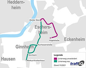 traffiQ verlängert die Linie 69 von der heutigen Endhaltestelle am Weißen Stein über die Kurhessenstraße und Ginnheim bis zum Markus-Krankenhaus. Ihr Ziel ist eine noch bessere Nahverkehrsanbindung von Eschersheim und Ginnheim – und zugleich wird eine der letzten Erschließungslücken, die der Nahverkehrsplan in Frankfurt noch festgestellt hat, beseitigt: das Wohngebiet „Im Fuchshohl“.