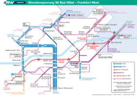 Den Auftakt macht die Deutsche Bahn, die weiterhin mit Nachdruck am viergleisigen Ausbau der Bahnstrecke zwischen Frankfurt und Bad Vilbel zur Verbesserung des Angebots auf der S-Bahnlinie S6 arbeitet. Insgesamt acht Wochen – von der zweiten Juliwoche bis zum Ende der Sommerferien – dauert hier die Unterbrechung. Sie beginnt am 8. Juli gegen 23.50 Uhr. Die Deutsche Bahn macht den Fahrgästen der S-Bahnlinie S6 ein Alternativangebot mit Bussen (siehe: https://bauinfos.deutschebahn.com/hessen). Der RMV bietet Mietfahrrad-Freiminuten und Jahreskartenkunden aus der Region eine IC/ICE-Nutzung zwischen Friedberg und Frankfurt.