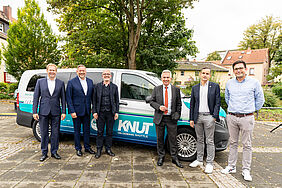Jetzt darf in Bonames, Harheim, Nieder-Erlenbach und Nieder-Eschbach „geknutet“ werden. Denn „Knut“ heißt das neue On-Demand-Angebot, das Oberbürgermeister Peter Feldmann gemeinsam mit Mobilitätsdezernent Stefan Majer und Vertretern von RMV, traffiQ, CleverShuttle und ioki am 4. Oktober offiziell auf dem Marktplatz in Bonames eröffnet hat. Ab sofort können Fahrgäste in den vier nördlichen Frankfurter Stadtteilen ein neues, flexibles Nahverkehrsangebot nutzen, das sie in elektrischen Kleinbussen ohne festen Fahrplan ans Ziel bringt.
