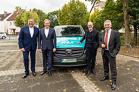 Zum Einsatz kommen drei elektrisch betriebene Kleinbusse des Mercedes-Typs eVito Tourer PRO. Sie werden mit Strom aus regenerativen Quellen geladen und sind somit zu 100 Prozent emissionsfrei. Die klimatisierten Kleinbusse bieten fünf Sitzplätze. Der Ein- und Ausstieg erfolgt komfortabel über große seitliche Schiebetüren. Der Innenraum ist großzügig gestaltet, sodass beim Ein- und Ausstieg keine Sitze umgeklappt werden müssen. Auch an die Mitnahme von Fahrgästen mit Rollstuhl ist gedacht: Hierzu wird eines der drei Fahrzeuge derzeit noch so umgebaut, dass über eine Rampe Fahrgäste mit Rollstuhl komfortabel und sicher einsteigen und mitfahren können.