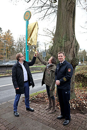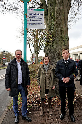Prof. Dr.-Ing. Tom Reinhold, Geschäftsführer der städtischen Nahverkehrsgesellschaft traffiQ, ergänzt: „Die Idee, den Namen der Station Gießener Straße in Feuerwehrstraße zu ändern, haben wir gerne unterstützt. Eine schöne Möglichkeit die Arbeit der Kolleginnen und Kollegen der Feuerwehr zu würdigen!“ Markus Röck, kommissarischer Amtsleiter und Direktor der Branddirektion, konstatiert: „Die Umbenennung in Feuerwehrstraße ist mehr als nur ein symbolischer Akt; sie ist ein starkes Zeichen der Wertschätzung für unsere Aufgabe und steigert unsere Sichtbarkeit in der Stadt. Hier an diesem Standort in der Feuerwehrstraße soll in Zukunft unser Feuerwehr-Campus weiterentwickelt werden. Die Feuerwehr als Gemeinschaft steht für Solidarität, Schutz und bedingungslose Hilfe zu jeder Zeit. Die Benennung der Haltestelle ist ein Geschenk an unsere Feuerwehr und ein Symbol, das weit über das Jubiläumsjahr hinaus Bestand haben wird.“